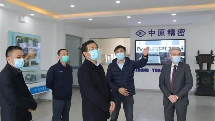 6月23日,意大利馬波斯首席執(zhí)行官Mario Gelsi,全球銷售總裁Stefano Corradini,中國區(qū)總裁Alberto Carboni,在總經(jīng)理王鴻偉和Davi的陪同下,參觀視察三門峽中原精密有限公司廠區(qū),將進行深層次合作。